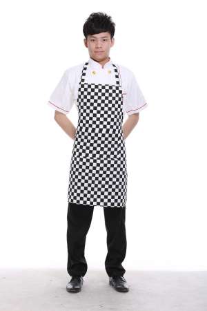 • 餐廳廚師圍裙掛脖黑色長袖酒店工作服定做中